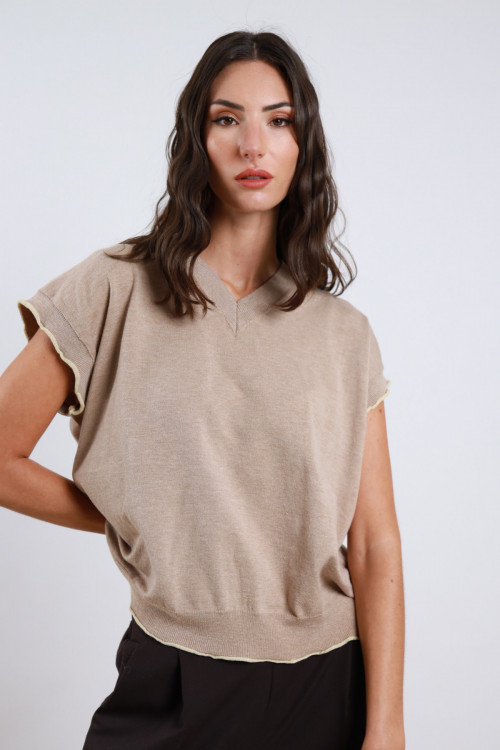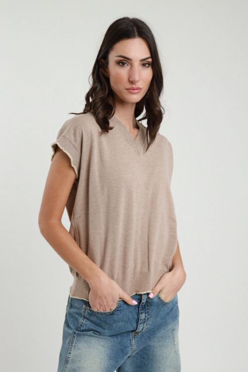 Gilet Over Scollo V con Orli a Costine e Bordi in Lurex.