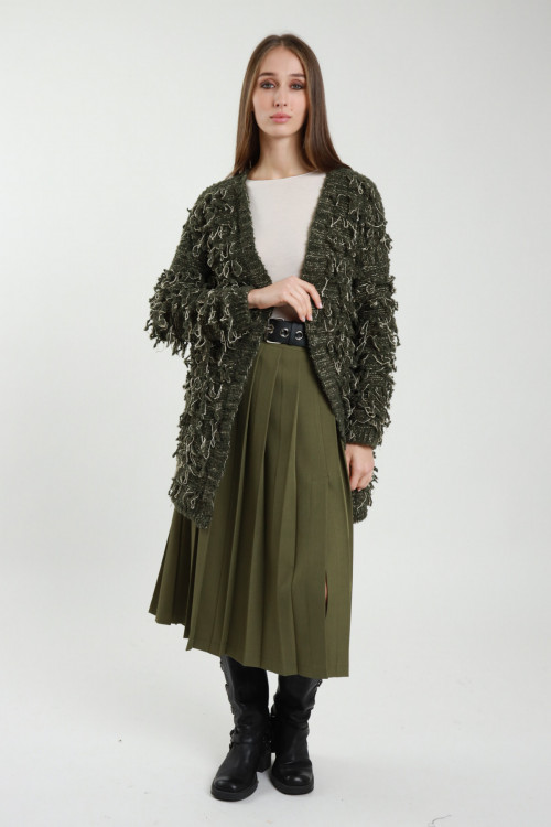 Cardigan Over a Costa Inglese Scollo V con Tasche Laterali Applicate.