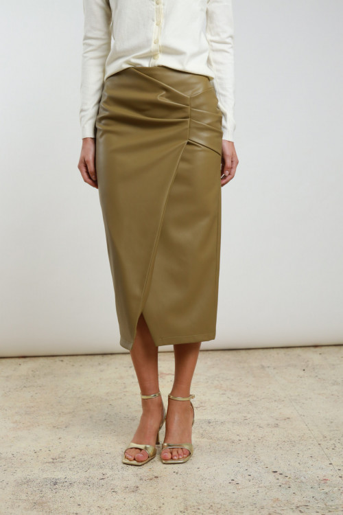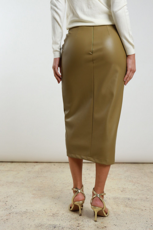 Gonna Midi in Ecopelle con Spacco Frontale e Chiusura a Zip Nascosta sul Retro.