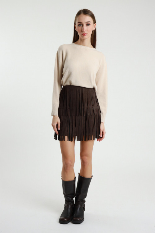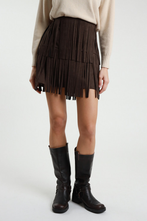 Minigonna in Ecodainetto con Frange.