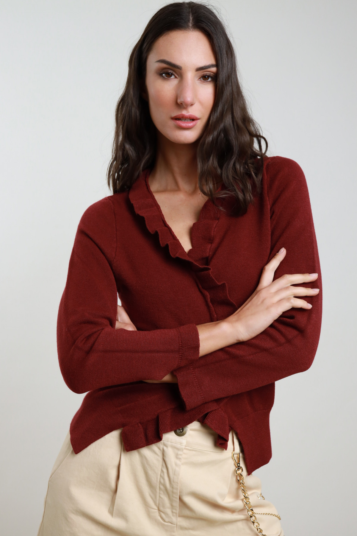 Cardigan Aperto con Dettaglio Gale negli Orli.