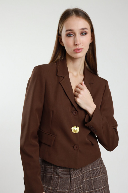 Gilet Crop Over, Chiusura 1 Bottone e Finte Tasche con Pattina.