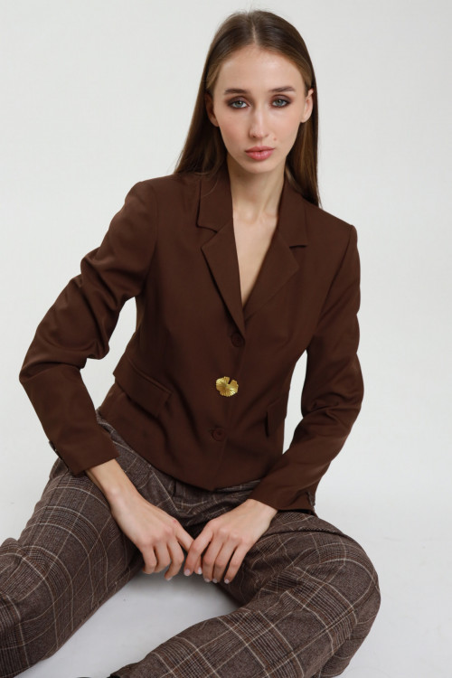 Blazer Monopetto con Applicazione Spilla con Viso, Tasche con Pattina.