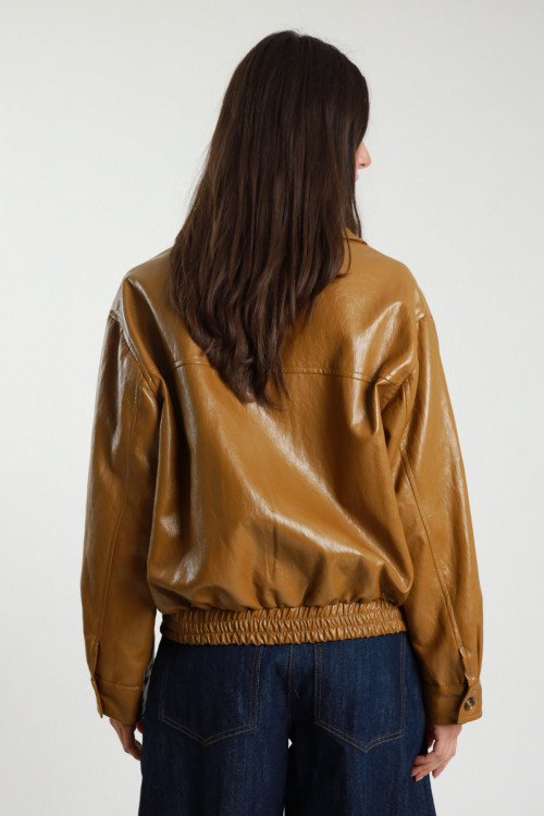 Bomber in Ecopelle con Tasche Filetto Laterali.