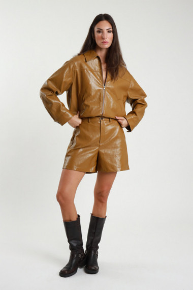 Shorts Ecopelle Chiusura Bottone, Tasche Portafoglio, Elastico sul Retro.