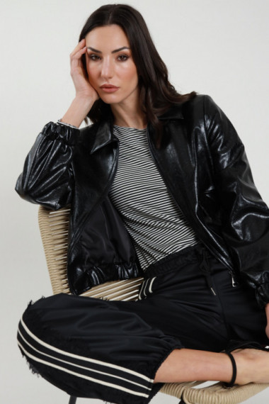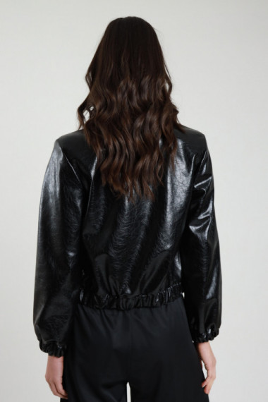 Bomber in Ecopelle con Colletto, Tasche Frontali Applicate ed Elastico sul Fondo.