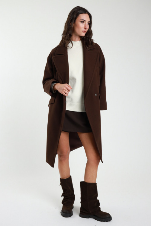 Cappotto Taglio Uovo Over con Tasche e Chiusura a Clip.