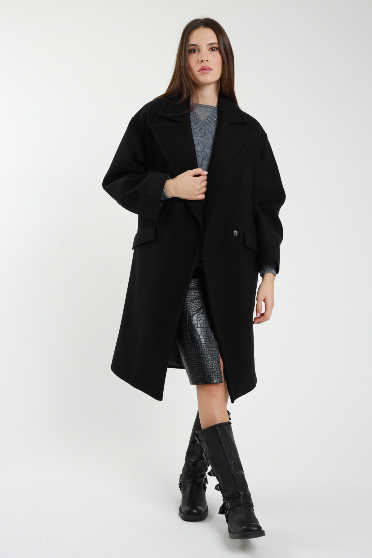 Cappotto Taglio Uovo Over con Tasche e Chiusura a Clip.