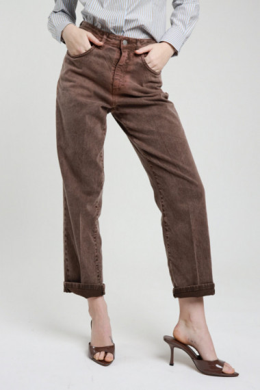 Jeans Elasticizzato Regular Fit con Risvolto Rimovibile sul Fondo, Vita Alta e Chiusura Zip e Bottone, Lavaggio Slavato.