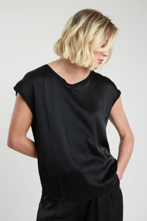 T-Shirt Mezze Maniche Stretch in Viscosa Elasticizzata con Bordi in Georgette.