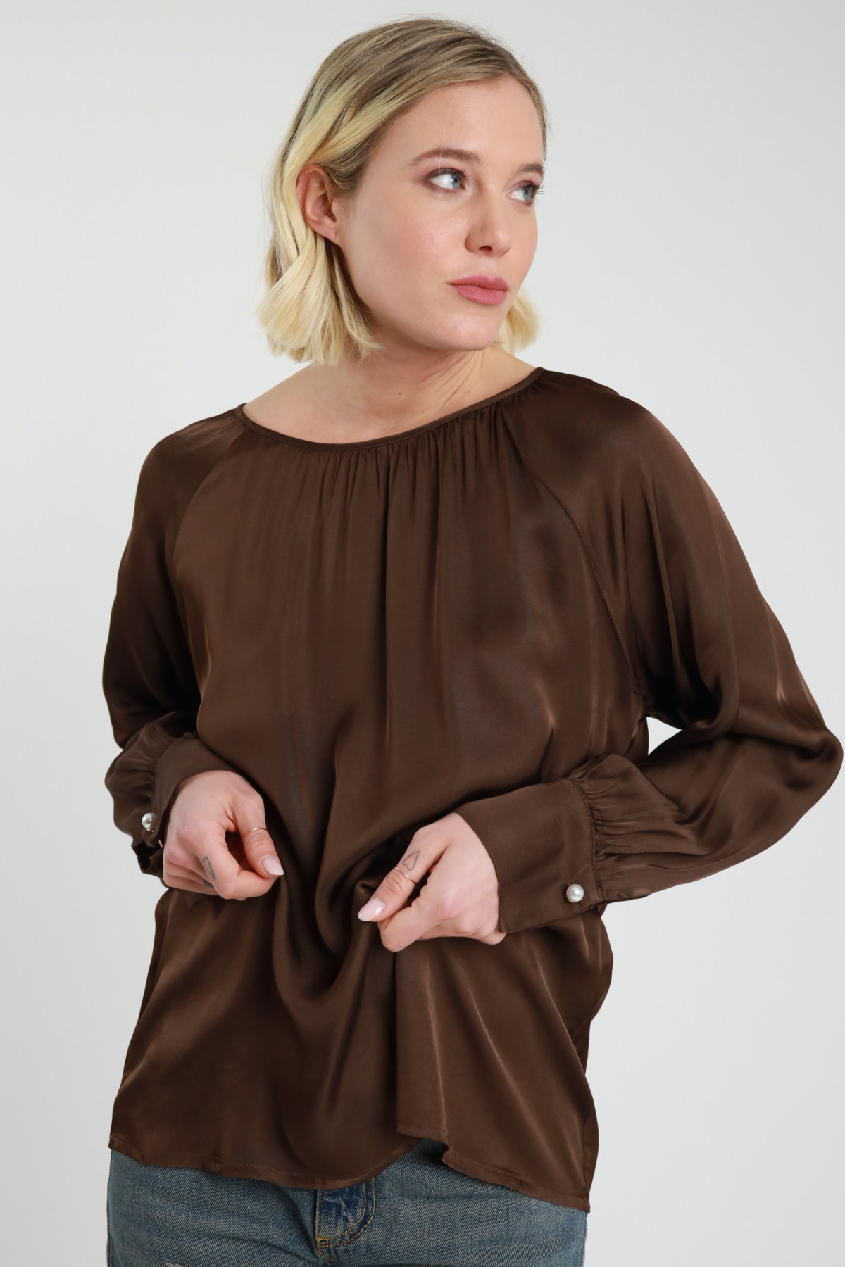 Blusa Girocollo con Polsini in Viscosa Effetto Raso.