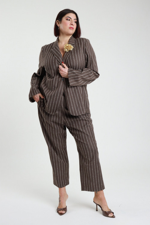 Giacca Mono Bottone Gessata con Spilla Fiore Rimovibile sul Rever - Linea Curvy Susy Star.