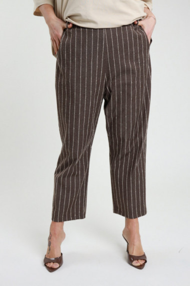 Pantalone Chino Gessato Con Elastico E Passanti In Vita - Linea Curvy.