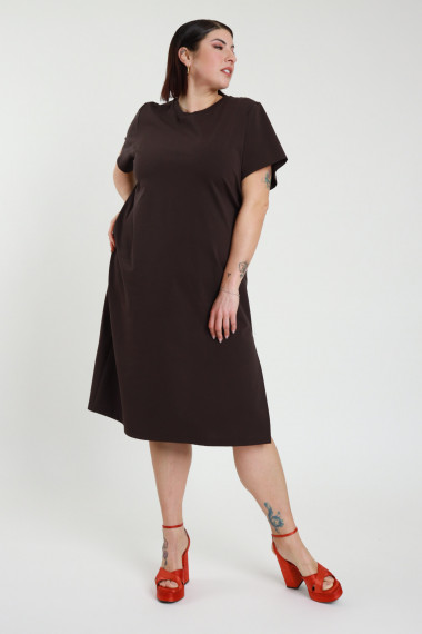 Abito Girocollo A Maniche Corte Con Spacchi Laterali, Taglio Midi - Linea Curvy Susy Star.
