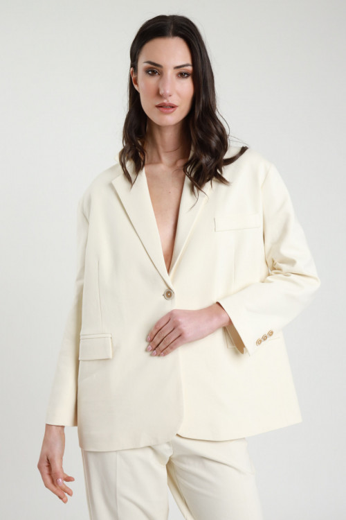 Blazer Monopetto Gessato, Tasche Filetto con Pattina.