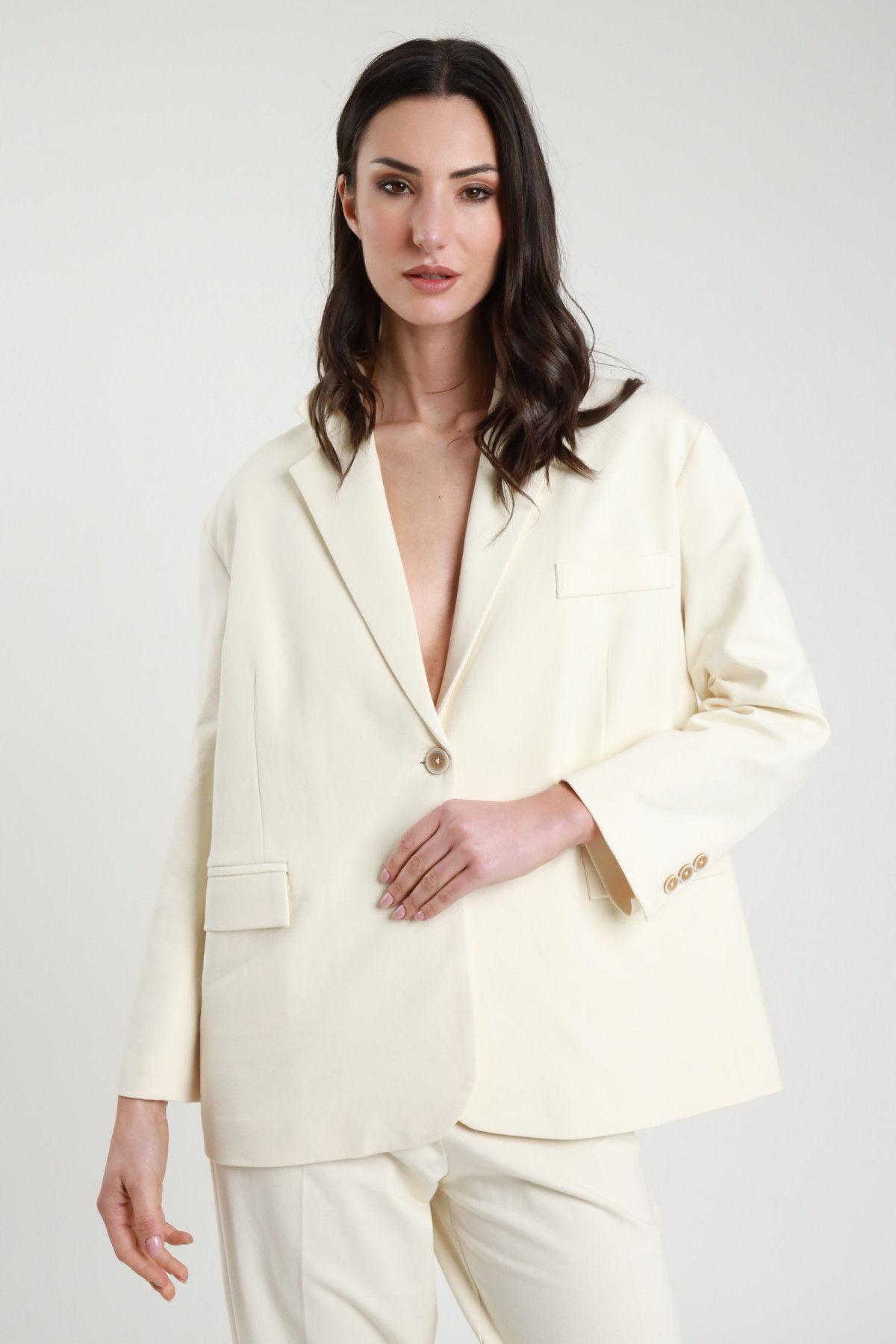 Giacca Over in Felpa Elasticizzata con Tasche a Pattina.