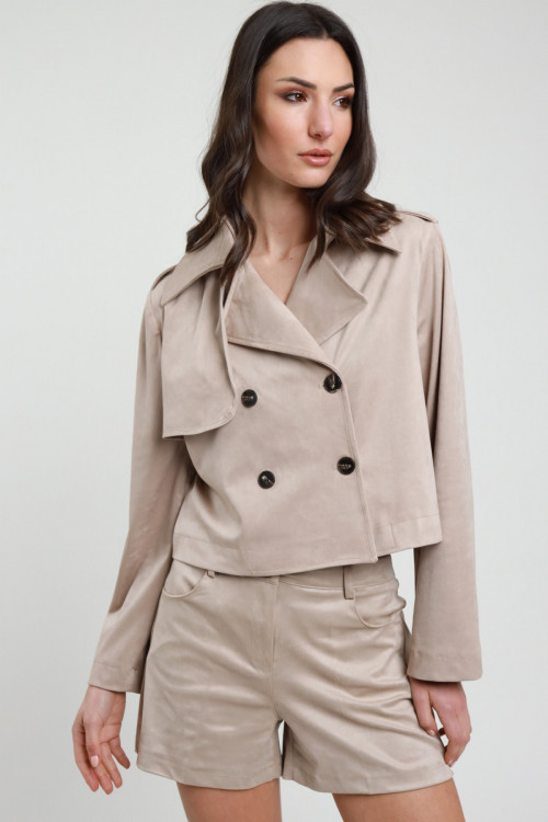Blazer Over Monopetto in Ecodainetto, Tasche Filetto con Pattina.
