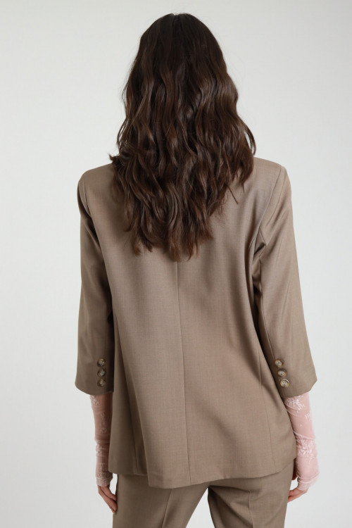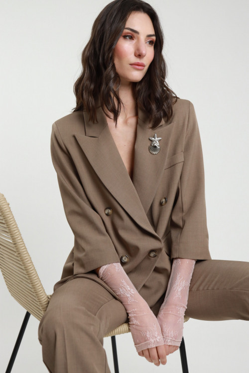 Giacca Doppiopetto con Manicotti in Pizzo e Spille Gioiello Rimovibili sul Rever.
