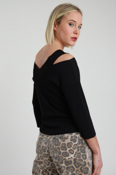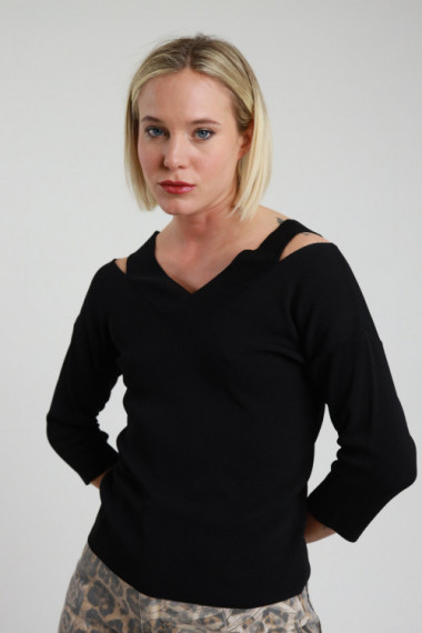 Maglia in Viscosa, Scollo V con Cut Out sulle Spalle. 65%vi 35%pa