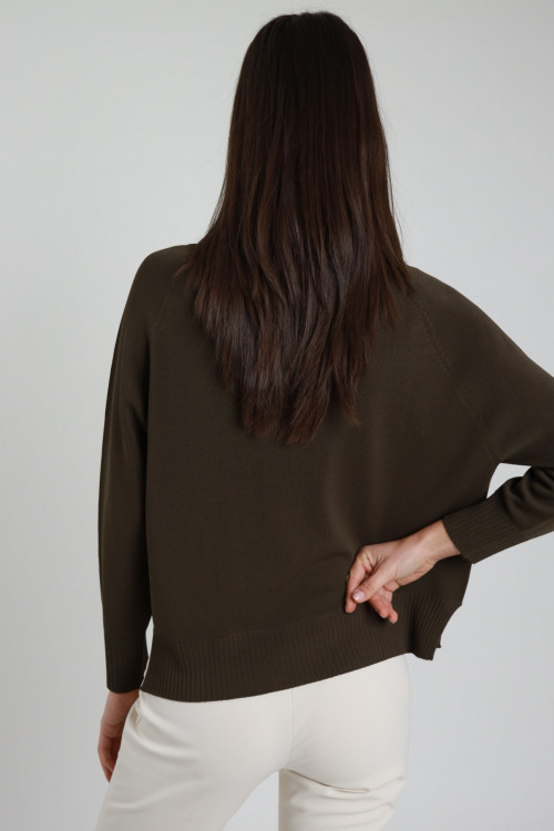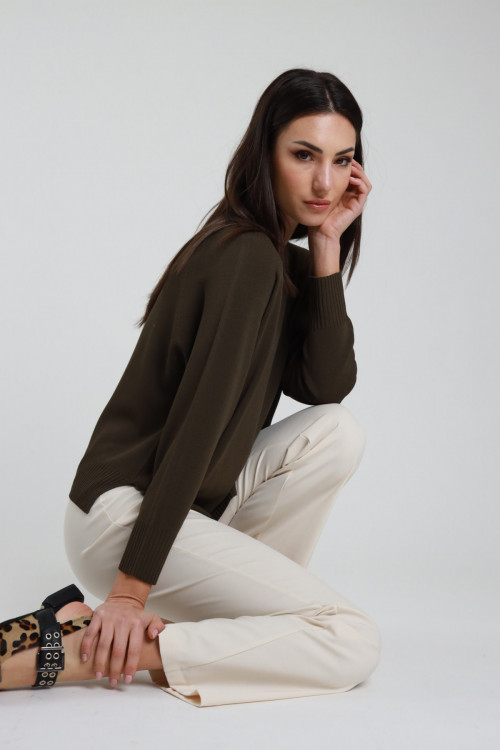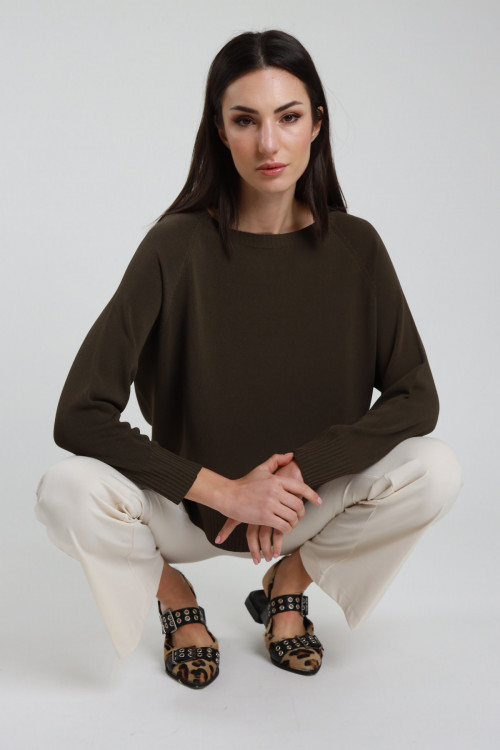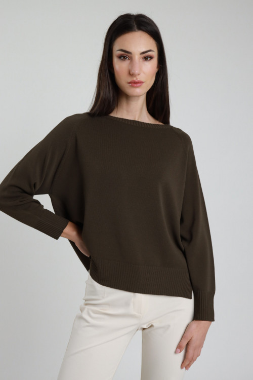 Maglia in Viscosa con Scollo a Barca e Coste sui Bordi.