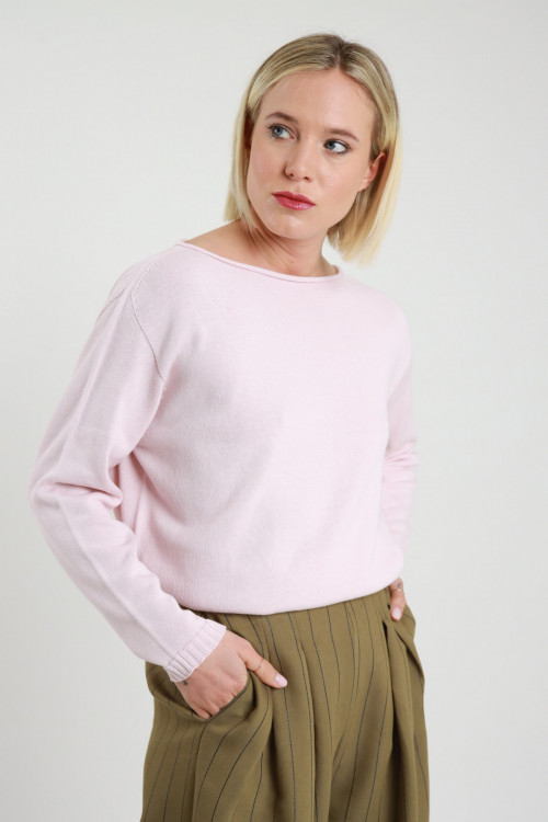Maglioncino Punto Pannocchia, Scollo Leggermente A Barchetta Con Spacchi Laterali.