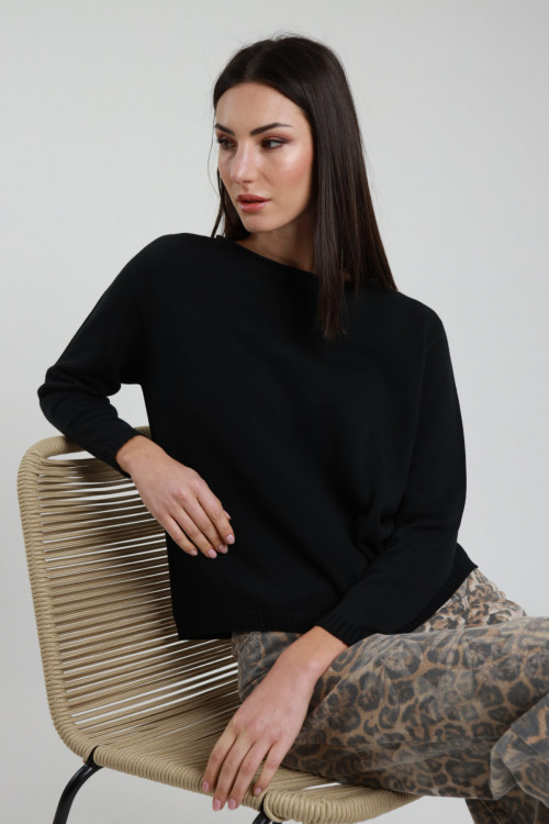 Maglia Manica Lunga Scollo Barchetta Taglio Vivo. Regular Fit.