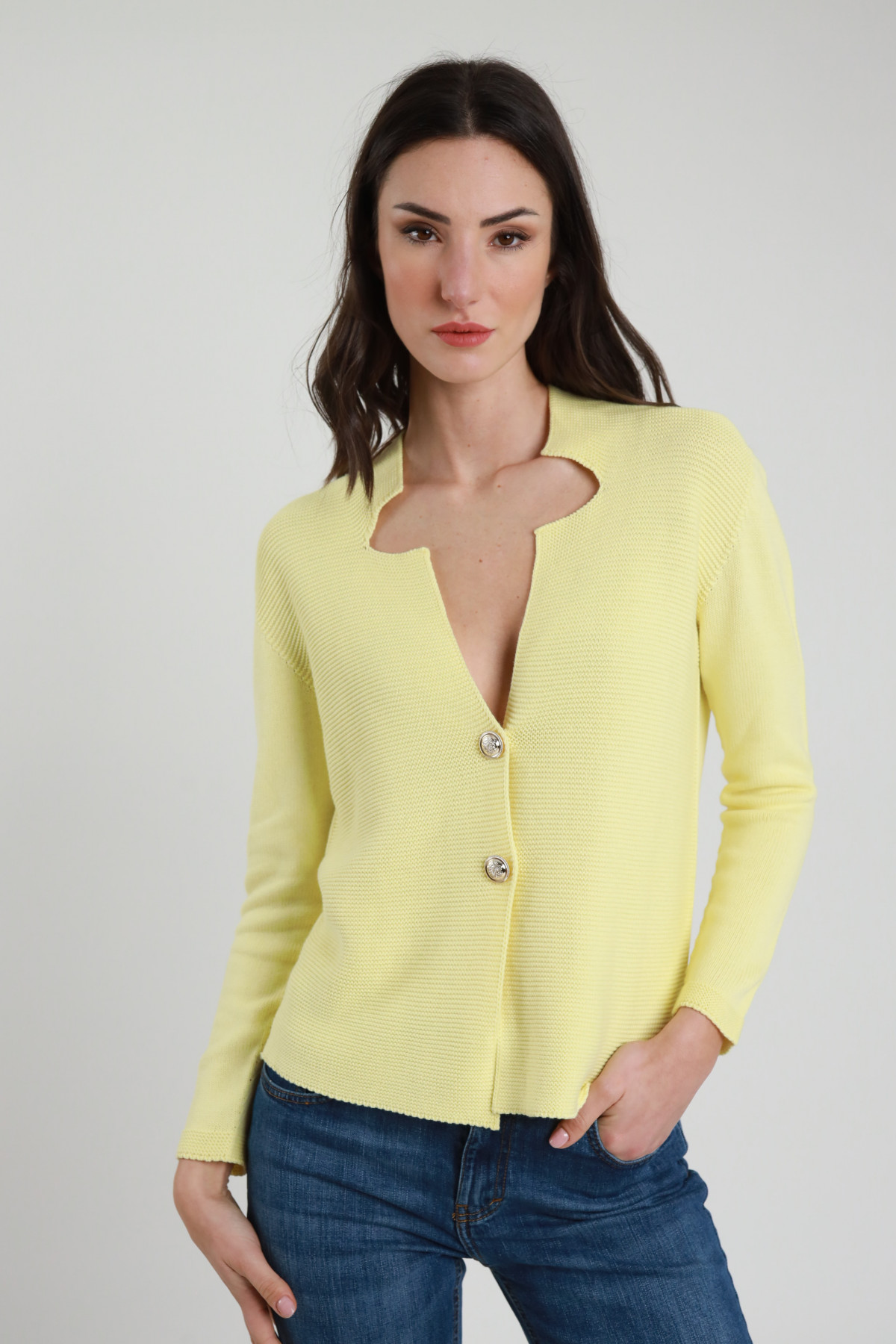 Cardigan Punto Riso in Cotone Chiusura 2 Bottoni.