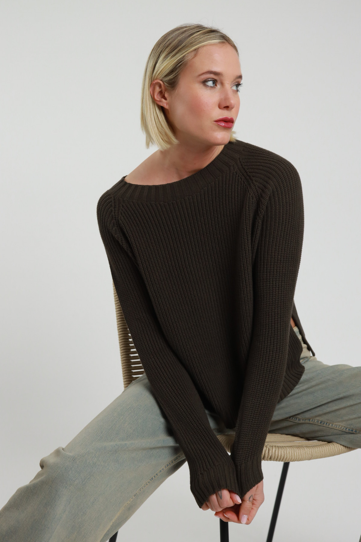 Maglioncino Punto Pannocchia, Scollo Leggermente A Barchetta Con Spacchi Laterali.