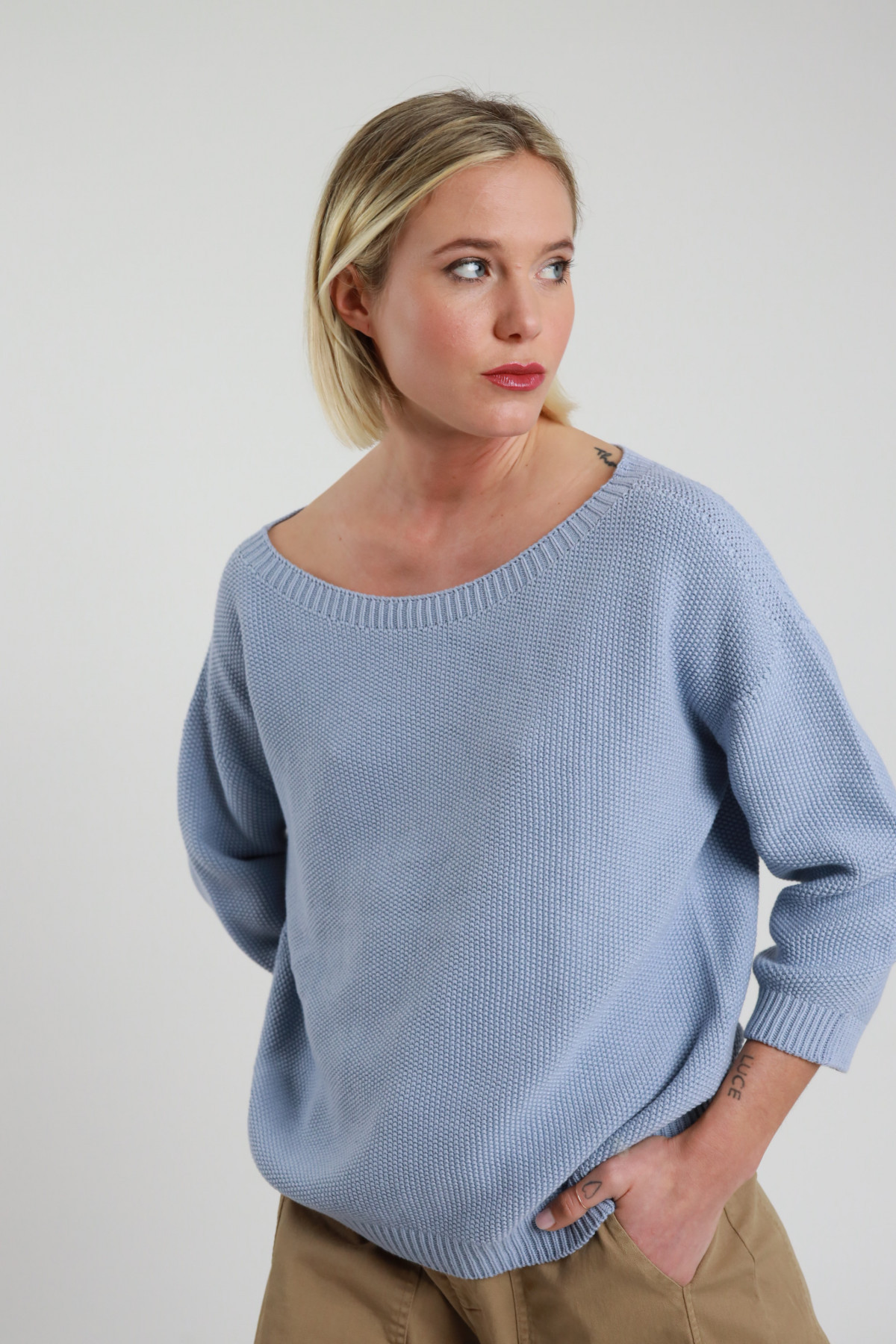 Maglia in Cotone Punto Riso Manica 3/4, Scollo Barchetta.