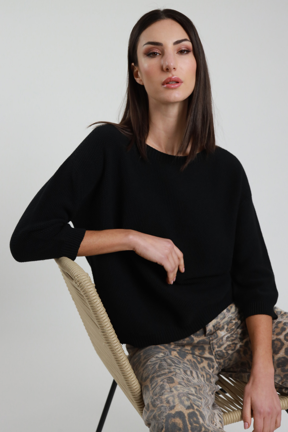 Maglia in Cotone Punto Riso Manica 3/4, Scollo Barchetta.