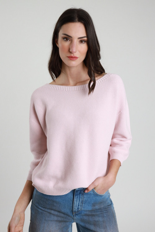 Maglia in Cotone Punto Riso Manica 3/4, Scollo Barchetta.