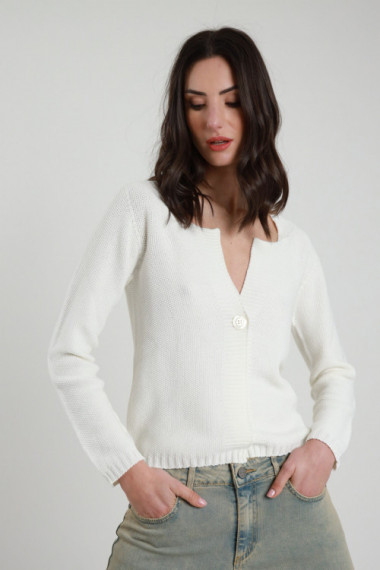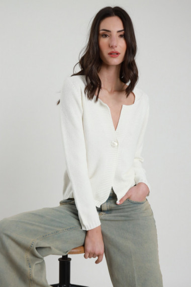 Cardigan in Cotone, Monobottone con Scollo Ampio.