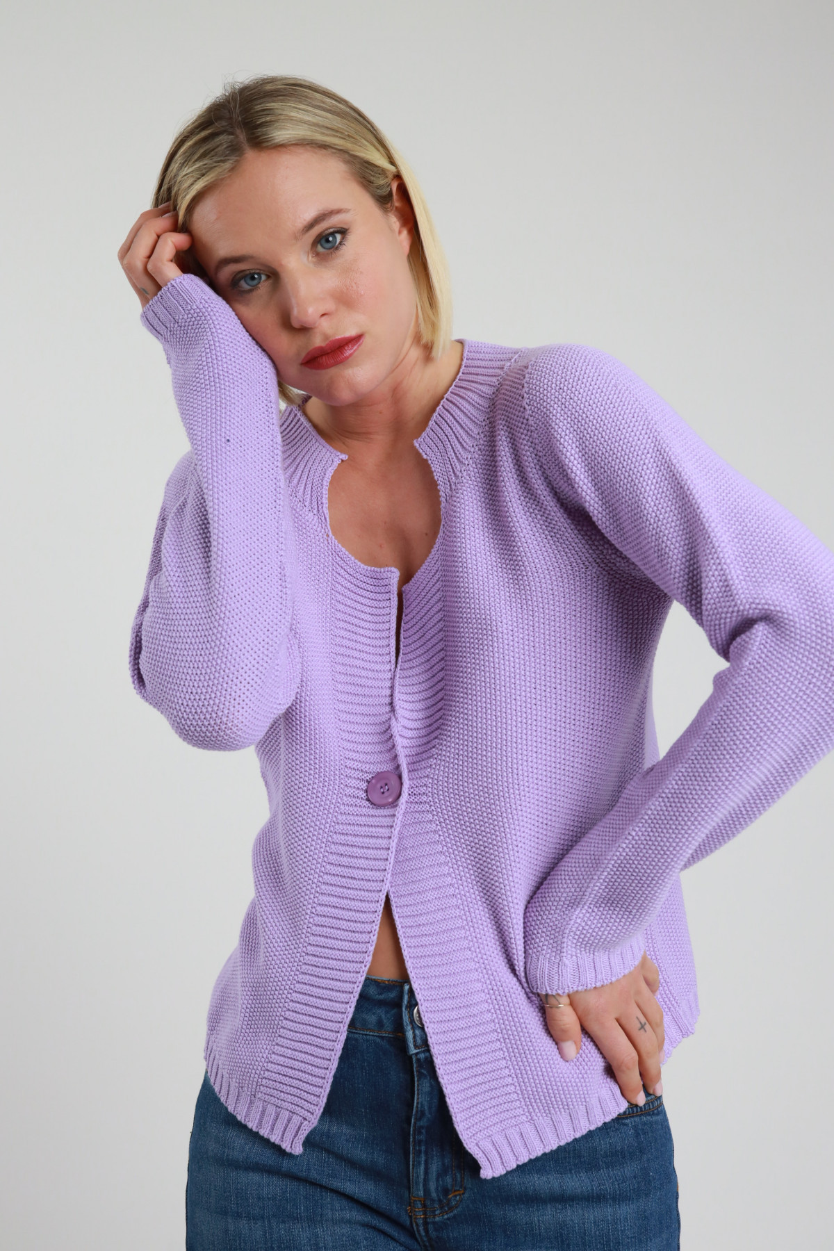 Cardigan in Cotone, Monobottone con Scollo Ampio.