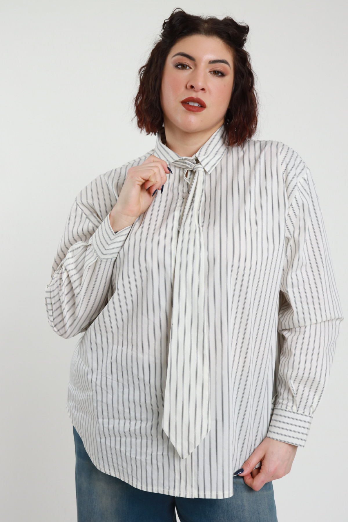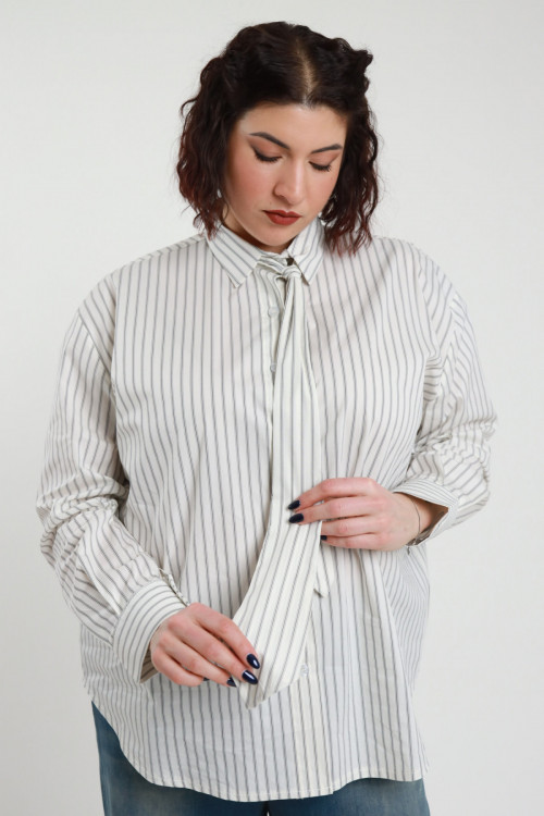 Camicia Gessata Elasticizzata con Cravattina - Linea Curvy Susy Star.