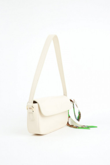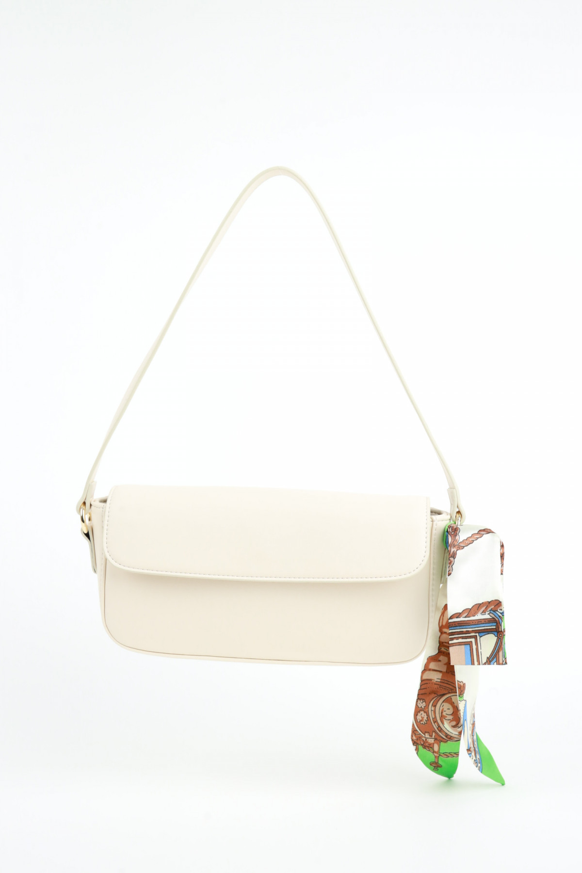 Borsa Baguette a Spalla con Patta e Chiusura Bottone a Clip, Dettaglio Foulard Rimovibile.