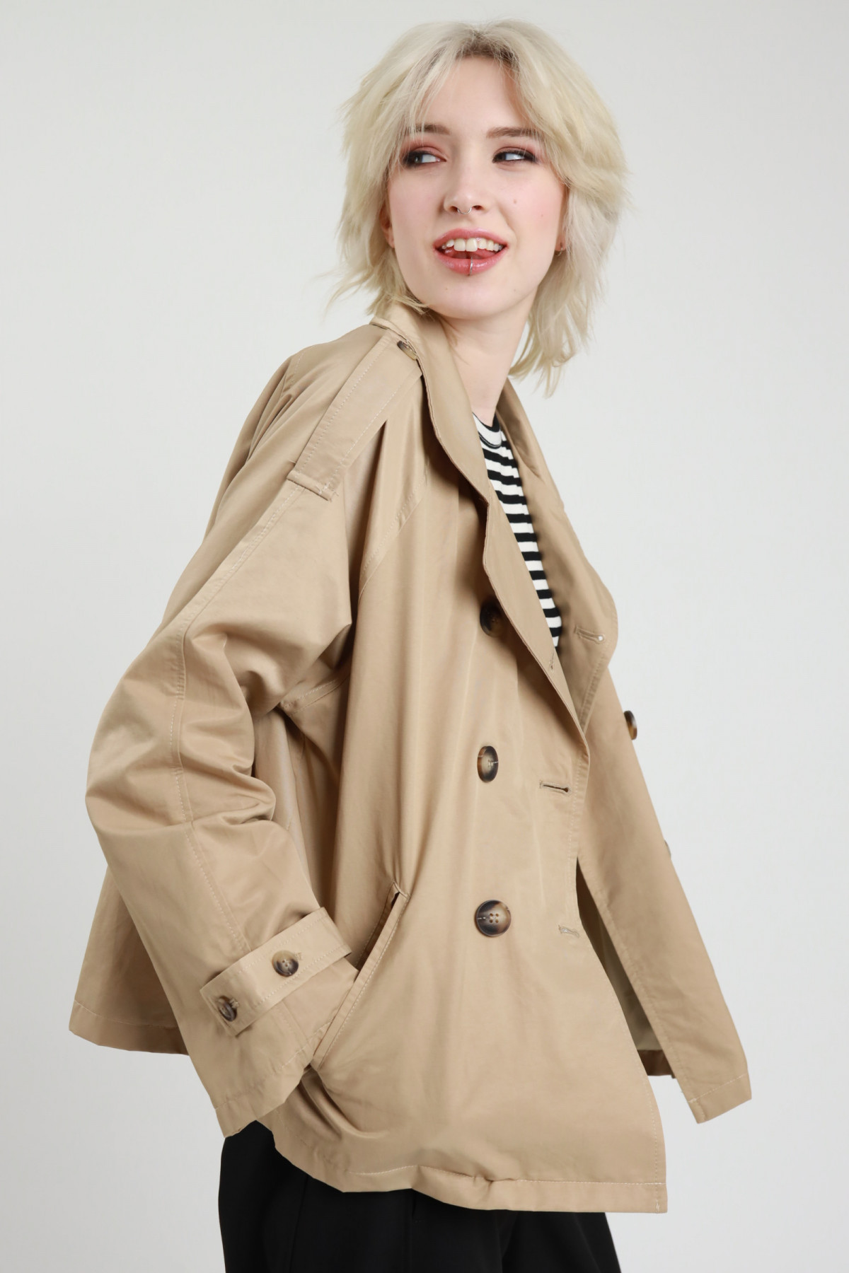 Trench Corto Doppiopetto in Cotone Impermeabile.