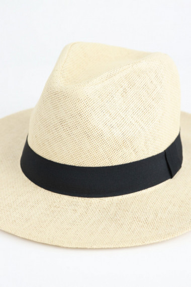 Cappello in Raffia a Tesa Larga con Nastro Nero.