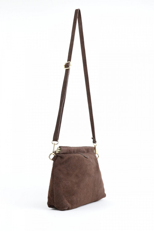 Borsa a Busta in Vera Pelle Scamosciata, Tracolla Rimovibile.