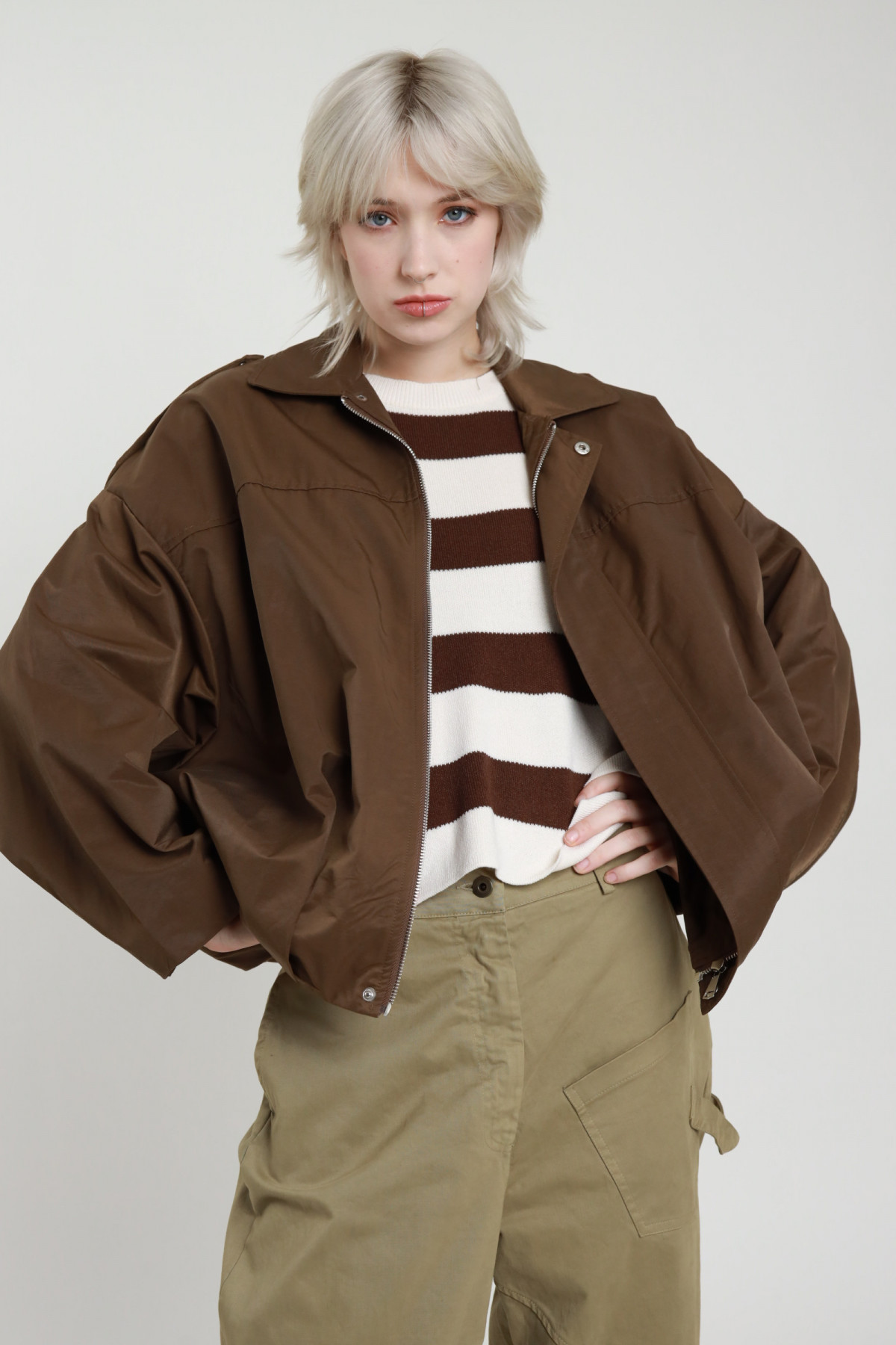 Trench Corto Taglio Manica A Pipistrello. Chiusura A Zip + Patta Copri Zip Con Bottoni A Pressione. Fondo Rimborsato.