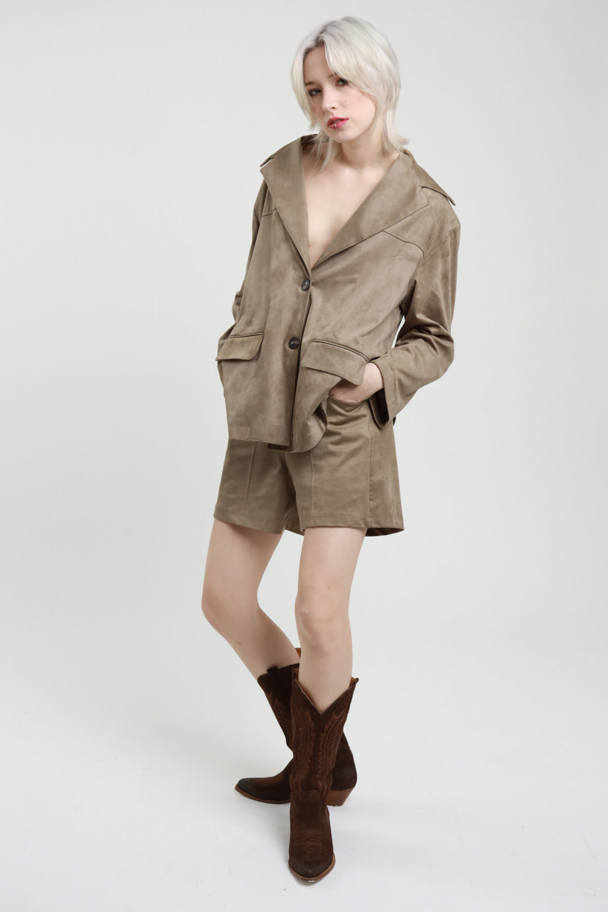 Blazer Over Monopetto in Ecodainetto, Tasche Filetto con Pattina.