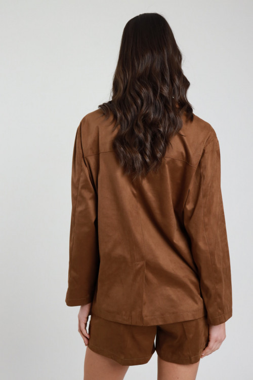 Blazer Over Monopetto in Ecodainetto, Tasche Filetto con Pattina.