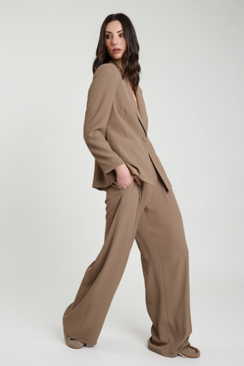 Pantalone a Palazzo Elasticizzato con Pences e Elastico in Vita. 97%pl 3%ea