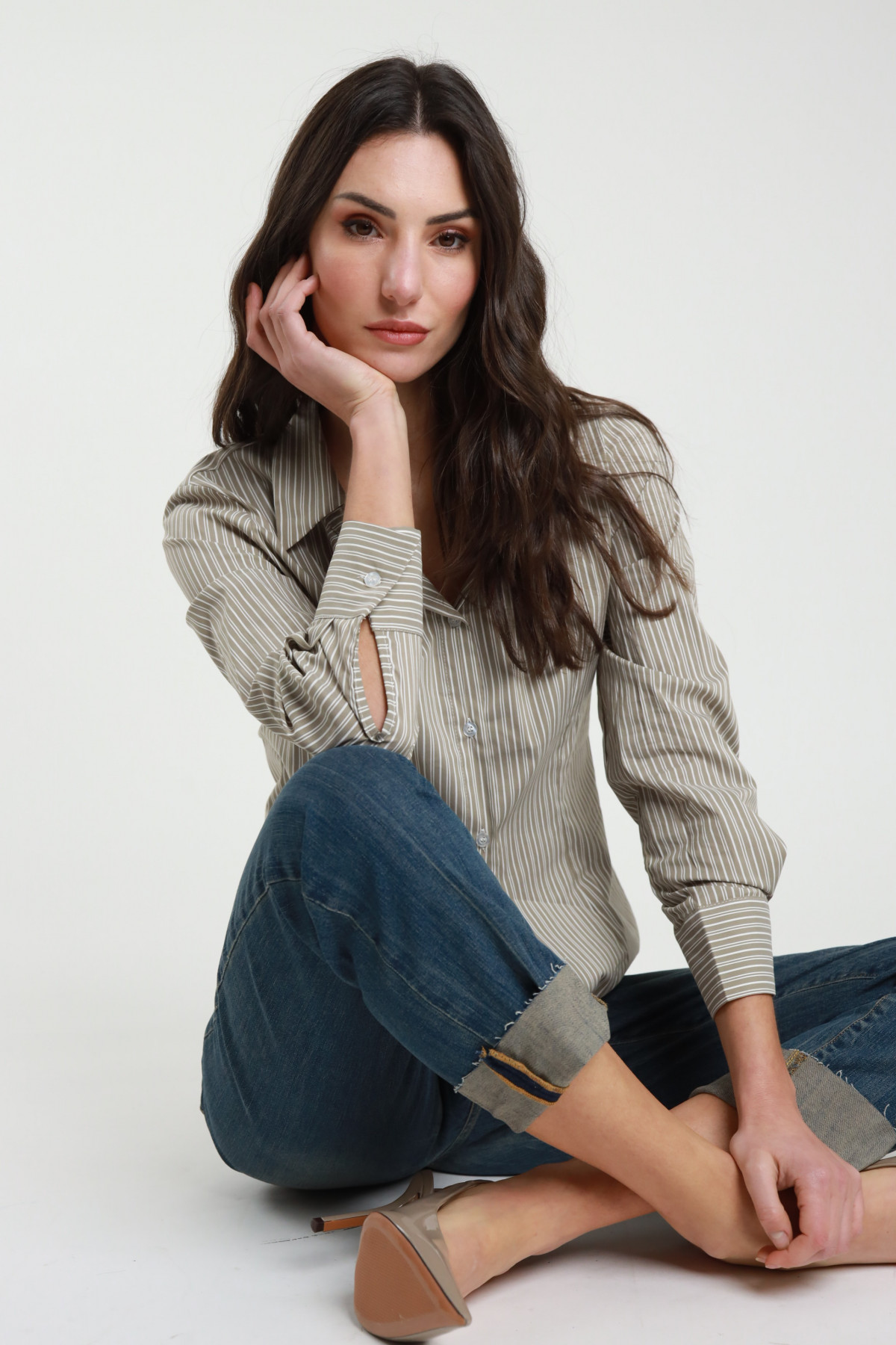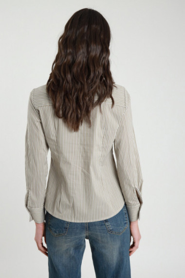 Camicia Gessata con Ripresa sui Fianchi e Dettaglio Fiocco sul Retro.