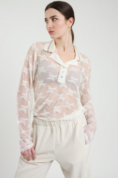 Maglia in Tulle con Ricami Perline