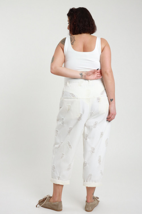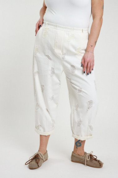Pantalone Balloon in Gabardina con Strappi e Elastico in Vita - Linea Curvy Susy Star.