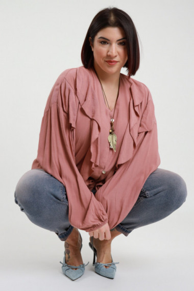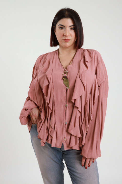 Camicia Scollo a V in Viscosa con Rouges e Collana - Linea Curvy Susy Star.