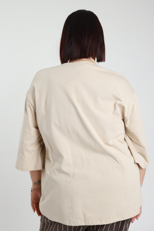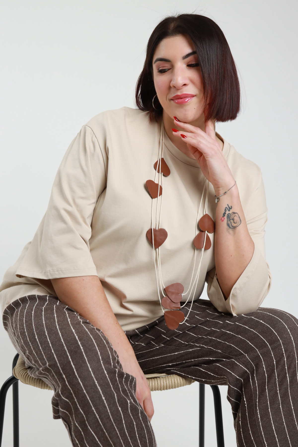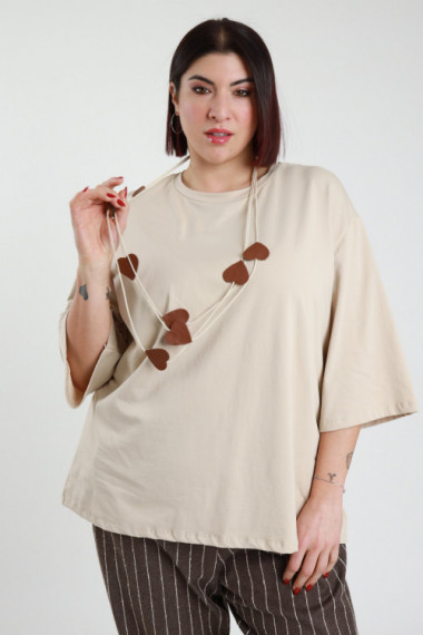 T-Shirt Girocollo, Taglio Over Quadrato Con Manica 3/4 e Collana Con Cuori - Linea Curvy Susy Star.