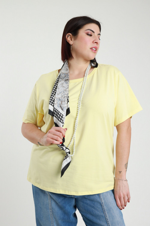 T-Shirt Girocollo Taglio Morbido Con Collana Metà Bandana e Metà Perle - Linea Curvy Susy Star.
