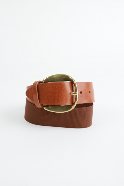 Cintura in Pelle con Fibbia, Elastico sul Retro.