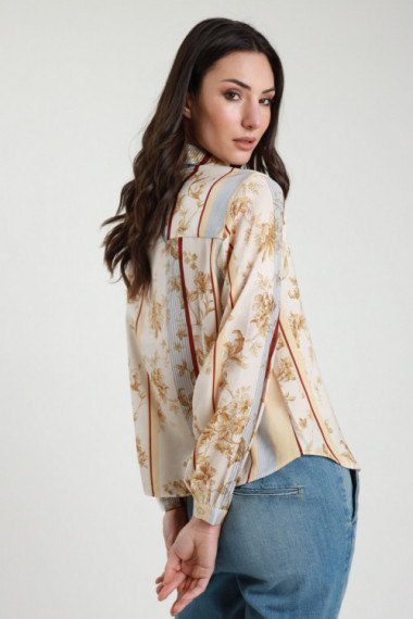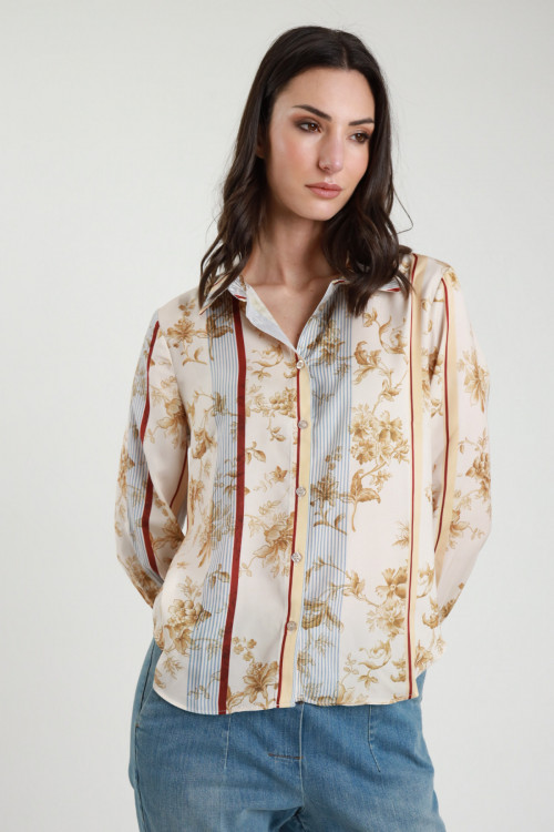 Camicia in Fantasia Righe e Floreale, Effetto Raso.